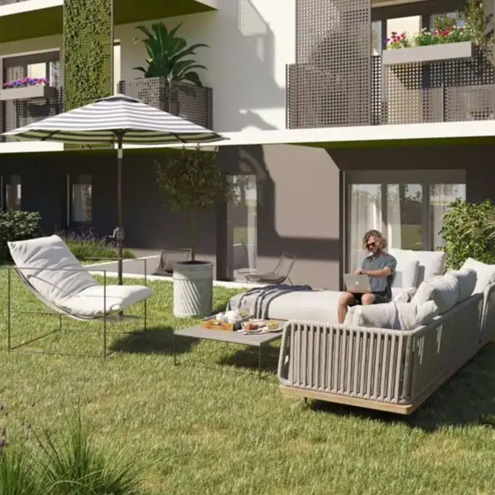 Vous souhaitez vous aérer ? Installez-vous sur votre terrasse en rez de jardin ou sur votre balcon en étage pour apprécier un moment de détente.